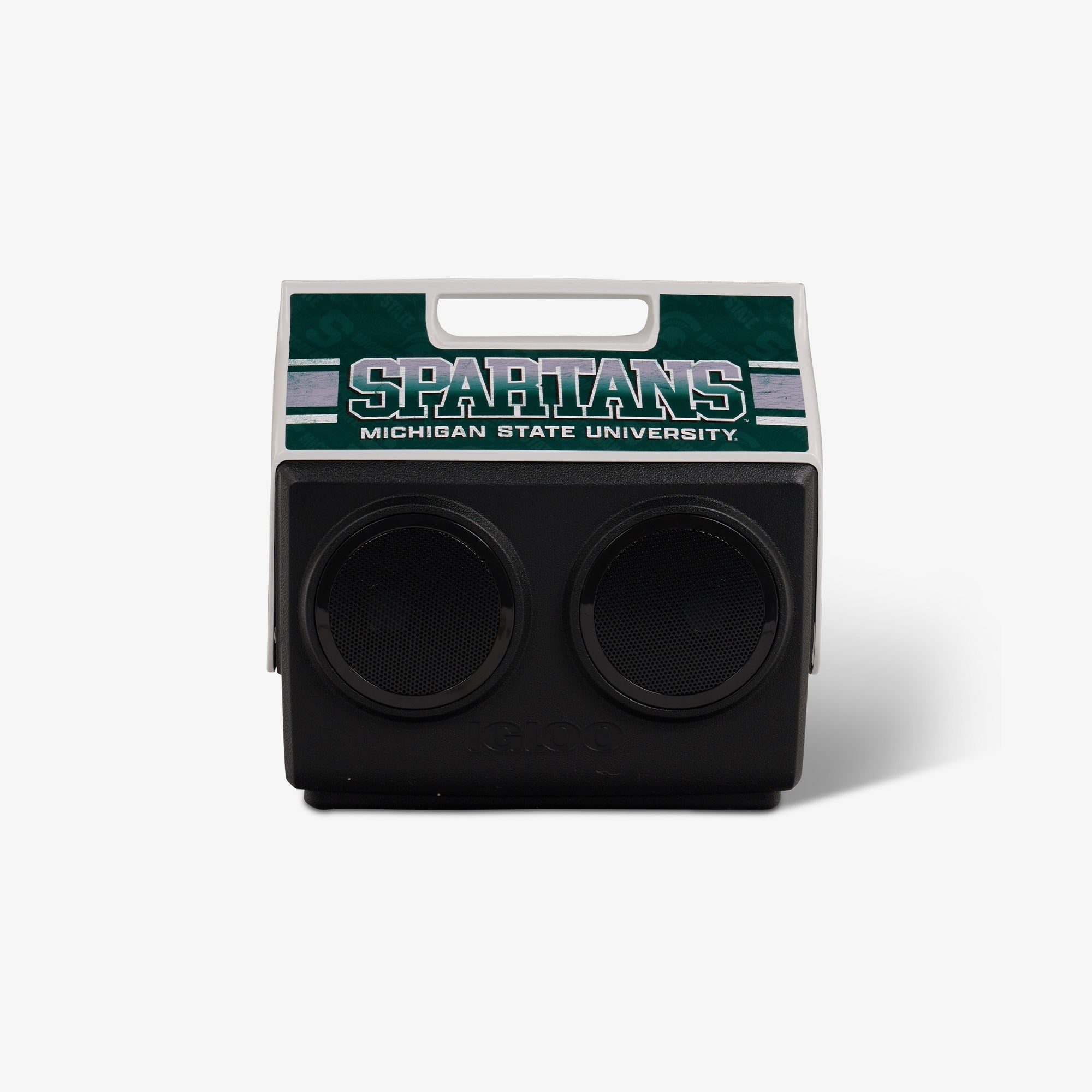 It's a cooler. It's a boombox. It's the cooler with the most school spirit! With this special-edition Collegiate Series KoolTunes — featuring built-in wireless speakers and throwback artwork — MSU fanatics like you can cheer on the Spartans™ while blasting your pump-up playlist with ice-cold refreshments in-hand. It's a campus-friendly size designed with Michigan State's® team logo and green. white and silver colors. so you can boast your college pride anywhere. Go Green Go White®!